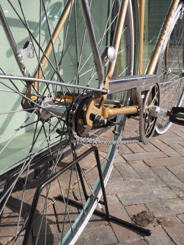 Roestvrijstalen ketting, geen roest als je de fiets een keer buiten laat staan.
